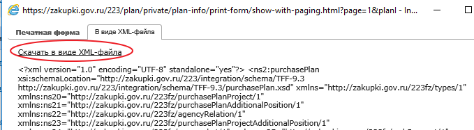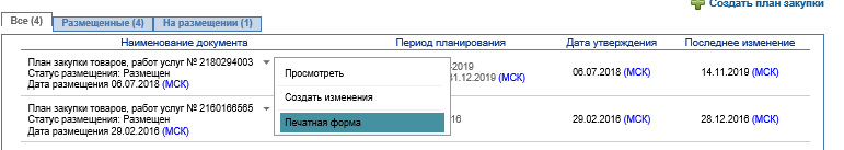 На ЕИС в разделе Планы закупок открываем актуальный план на просмотр кнопкой Печатная форма :