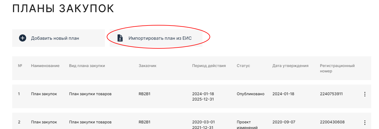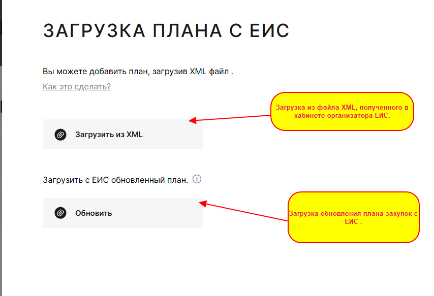 Так же можно загрузить обновленный план закупок с ЕИС, если есть предыдущая версия плана уже загруженная на ЭТП.