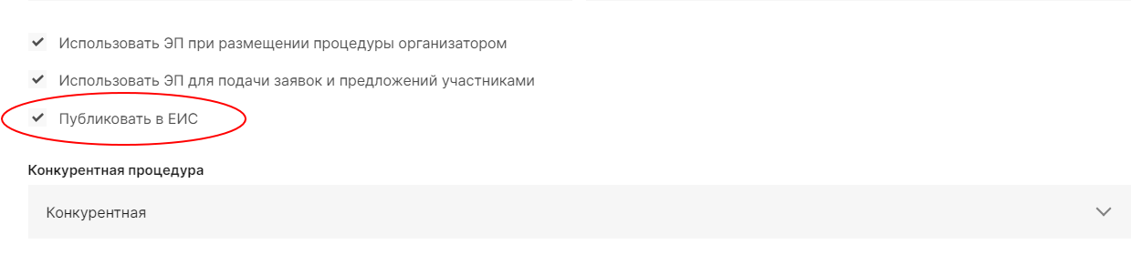 - При добавлении нового извещения отмечайте "Публиковать в ЕИС":