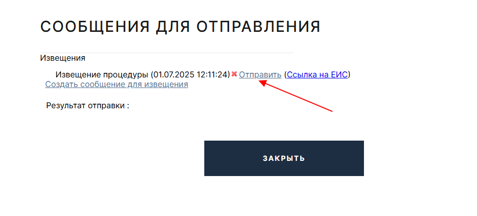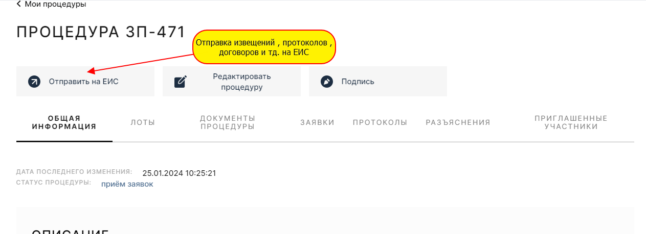 ЕИС после успешной отправке сообщений (извещения или протокола) на ЕИС.