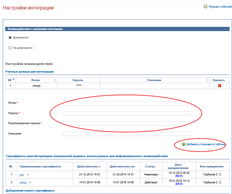 Эти же Логин и Пароль нужно будет указать на торговой площадке в разделе Настройки интеграции с ЕИС: