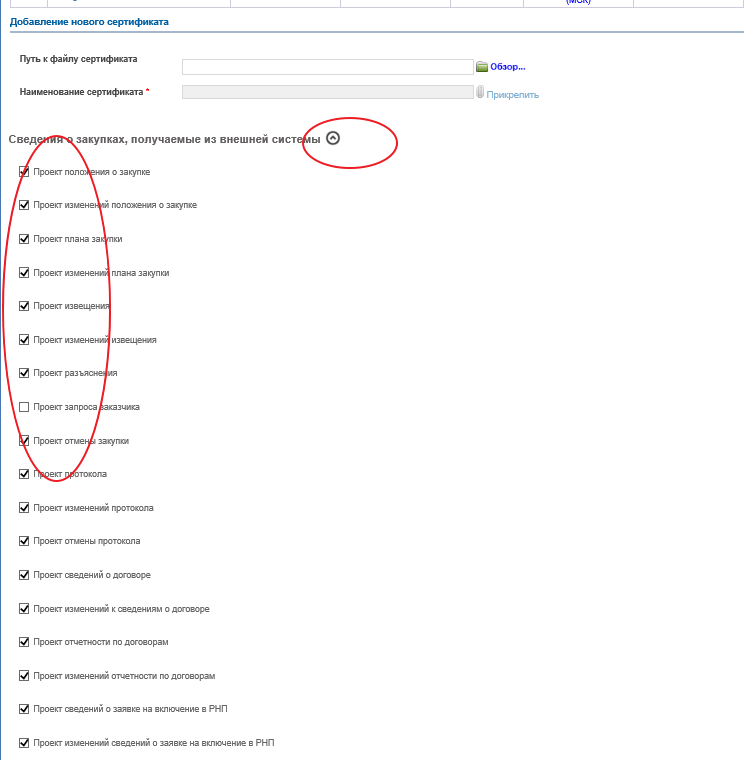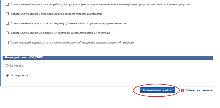 Далее отметить те данные которые будет получать ЕИС с торговой площадки :