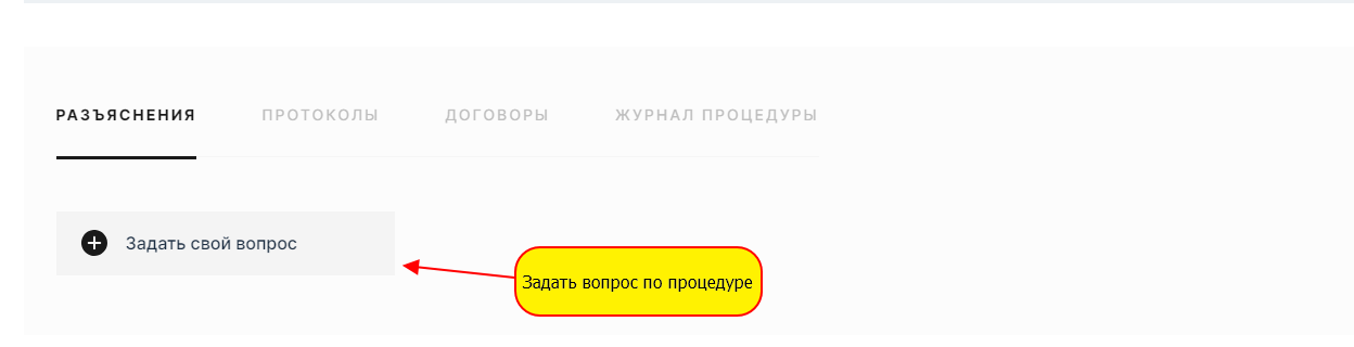 - Разъяснения (для запроса разъяснений по процедуре). В поле необходимо указать вопрос и нажать на «Отправить»;