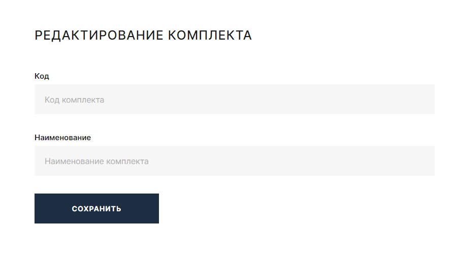 В открывшейся форме «Редактировать комплект» необходимо указать код и наименование , нажать  «Сохранить».