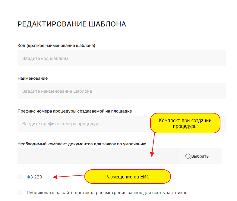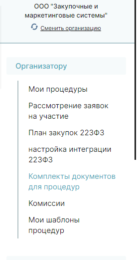 -  создания нового комплекта документов запрашиваемого у претендентов на участие в процедуре,