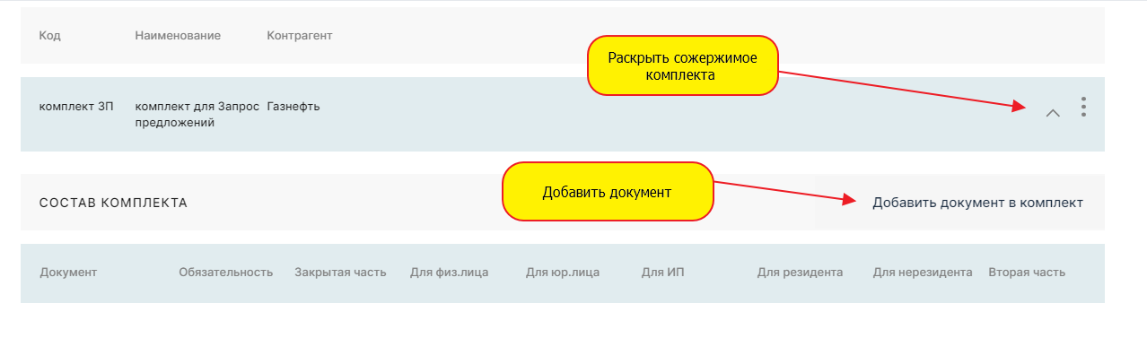 В добавленной строке кнопкой разверните содержимое комплекта :