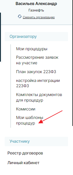 Для создания нового шаблона процедуры необходимо в меню «Организатору» выбрать раздел «Мои шаблоны процедур». В открывшемся окне нажать  «Добавить новый шаблон» .