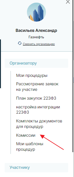 Для формирования на ЭТП комиссии, принимающей решение по окончании этапов процедур закупки/ продажи необходимо :