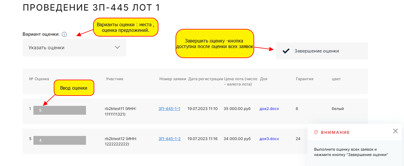 Для того что бы перейти к оценке заявок нужно