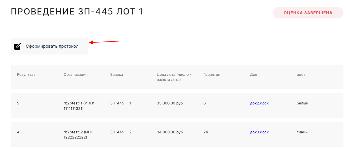 Вас появится возможность сформировать протокол