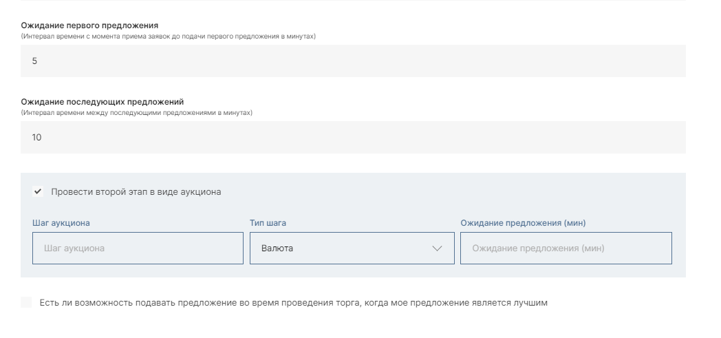Параметры второго этапа, аукцион